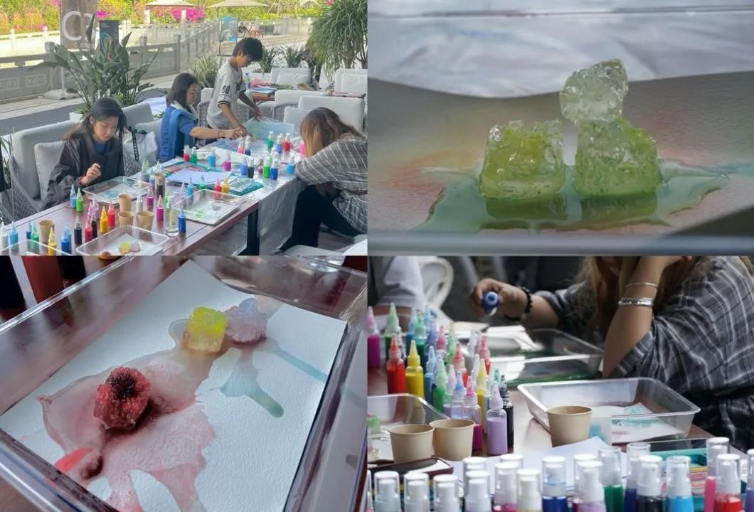 “水境创生”是一场基于道家哲学的水艺术疗愈体验活动,来源于视觉传达设计专业2024届本科毕业设计。道家文化以水喻道,水的柔和、无私与包容,是道家哲学抽象思想中“上善若水”、“顺应自然”的具象化表达。活动以“水”的艺术创作为主要疗愈形式,包括冰盐画、水拓画和雾气画三个体验板块,参与者可以通过水的平静变化,放慢节奏,感受情感的流动。活动旨在围绕水的不同形态和情感化视觉表现探讨水作为自然媒介的疗愈力量。活动开展当日适逢母亲节,水滋养万物,孕育生命,正如母亲无私的爱一样,温柔而坚定。水的艺术创作和疗愈力量,也为体验母爱的温暖与包容,提供了一扇特别之窗。