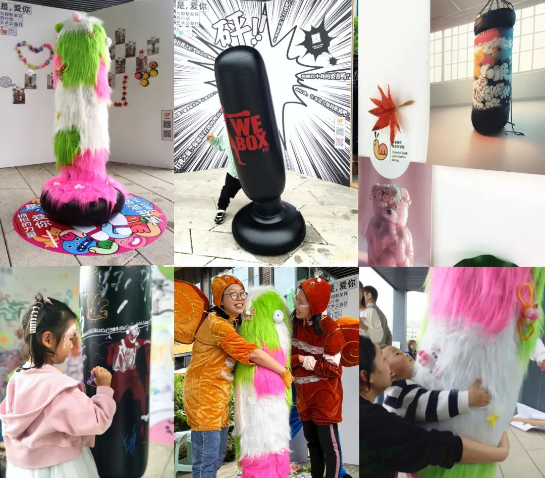 学院设计与媒体艺术系与华西心理卫生中心共同开展的“艺术x设计x心理”跨学科实验艺术项目中的宣泄柱设计项目,通过对色彩、形态、材料、行为、功能的思考,运用拥抱、绘制、书写等行为模式探讨舒缓内心压抑情绪的方式。如利用毛茸茸柔软的表面材料将传统的宣泄柱转变为一个令人喜爱的小怪兽形象,变成可击打和拥抱的多功能互动体验装置;运用ai数字技术的融合,对宣泄柱进行艺术化塑造,呈现出更为丰富和富有想象力的视觉样貌,旨在为抑郁友好行动提供一个充满温馨、包容的环境。