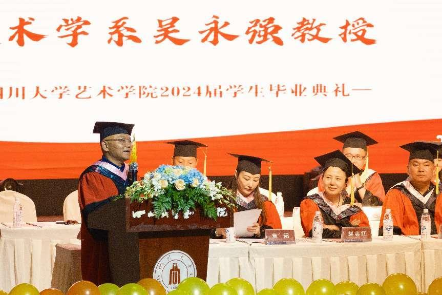 “天行健,君子以自强不息。”各位毕业生们,正在成长为有志气、有骨气、有底气的时代新人。望同学们牢记川大学子身份,坚守艺院初心,新时代赓续奋进,谱写艺院之荣光。愿每一位艺院学子,长路漫漫觅佳音,乘风破浪繁似锦!以时光作渡,扬帆远航。四川大学艺术学院永远为你们敞开家门,欢迎大家常回家看看!