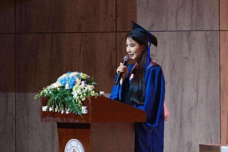 接着,来自四川大学艺术学院2020级美术学专业的本科生代表郝淑乐同学和2020级设计学专业的研究生代表曾琦同学回顾了在大学里的精彩时光,回想自己的成长与收获,分享了心得与感悟,并为全体毕业生送上了美好的祝福。