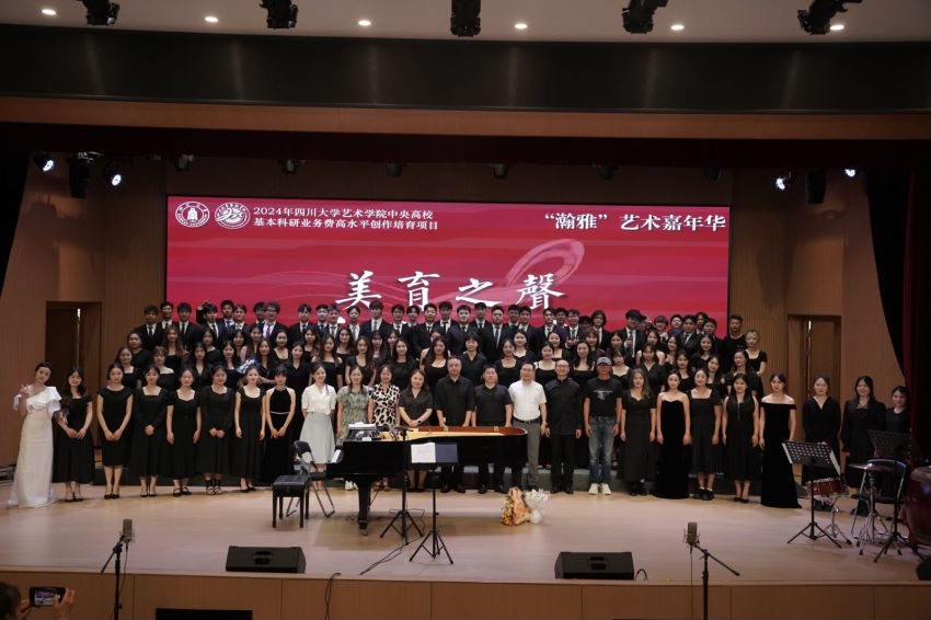 在这个槐花胜雪、栀子盛开的六月,四川大学艺术学院明远合唱团带来了三场音乐的饕餮盛宴。2024年6月5日、6月19日、6月23日,由四川大学艺术学院主办,四川大学艺术学院音乐系承办的2024年四川大学艺术学院中央高校基本科研业务费高水平创作培育项目“美育之声,和谐之音”——艺术学院明远合唱团合唱专场音乐会分别于在四川大学江安校区小剧场、四川大学望江校区文华演播厅、四川大学博物馆成功举办。全场共演唱了14首曲目,从耳熟能详的通俗歌曲到古诗词再到八声部无伴奏合唱等,一曲曲经典的曲目引起观众的共鸣。