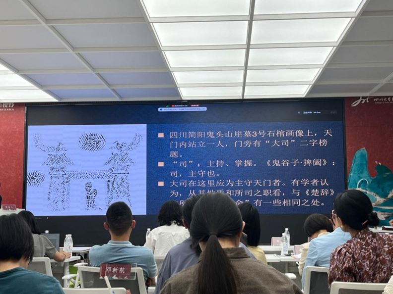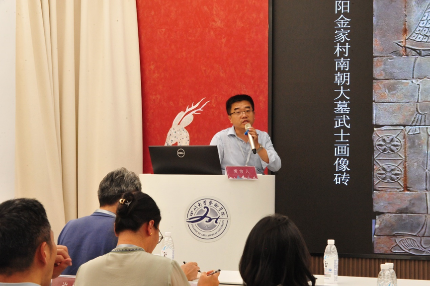 15日下午2时20分,第二场专题研讨开始。本场研讨聚焦墓葬与宗教艺术,由东南大学艺术学院汪小洋教授担任主持人。北京大学考古文博学院韦正教授、四川大学考古文博学院罗二虎教授、东南大学艺术学院李慧国博士、四川大学艺术学院胡听汀副研究员等四位学者依次发言。