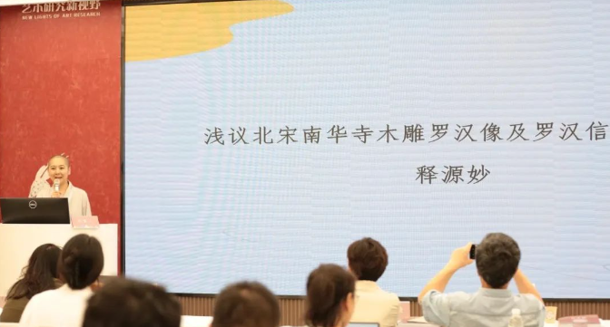 源妙法师的报告将禅宗信仰与罗汉信仰结合,对北宋南华寺木雕及罗汉信仰的流变展开探讨。首先,源妙法师对南华寺木雕罗汉像遗存进行考释,并展开了对南华寺木雕罗汉像铭文的补充论证,分别讨论了纲首和会首问题、供养罗汉的方式、厢界的问题以及与广州寺院的关系。随后,源妙法师对罗汉图像和罗汉信仰的源流进行了辨析。最后,源妙法师对罗汉信仰的传播路径进行了比较,她认为宋代的航海贸易非常发达,罗汉造像艺术和罗汉信仰便在这一时期沿着海上丝绸之路传播到了其他国家。并且,汉藏两地的罗汉信仰是在与不同的文化融合后表现出了各自的特色,但其根本的精神是一致的。