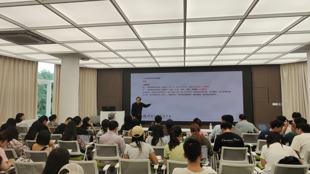 在7月4日上午举行的第三讲《理论研究与论文写作》中贾教授指出,学术研究依靠研究理论与研究方法两把钥匙,二者缺一不可。他结合多年的调研、教学与写作经验,从理论与实践、学术研究与学术规范、理论研究中的概念以及研究理论与研究方法四个方面探讨如何做理论研究。他强调,论题、论据、论证是理性的,逻辑体系与理论思维在研究中尤为重要,通过对大量材料归纳、分析、提取,形成一套简化的客观规律的总结,以此指导实践与创作,为社会创造价值。在论文写作板块,贾教授结合正反案例,从题目、摘要、大纲、内文与结论五点进行阐述,强调题目与论文概念需要解读,摘要应避免概而泛,大纲的逻辑与内文材料依据的重要性,最后在论证环节得出具有针对性、具体性、合适性的结论。设计与媒体艺术系系主任许亮副教授对讲座进行了总结。