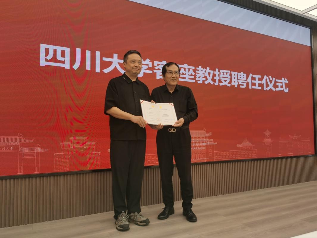 在活动期间,还举行了贾京生教授四川大学客座教授聘任仪式。聘任仪式由学院副院长焦阳副教授主持,由学院院长何宇教授向贾京生教授颁发聘书,正式聘请贾京生教授为四川大学客座教授。对贾京生教授的聘任,将极大地促进我院设计学学科的发展,提升教学质量和科研水平,带动学术团队的发展和学生的成长,进一步巩固和提升我院的学术地位。