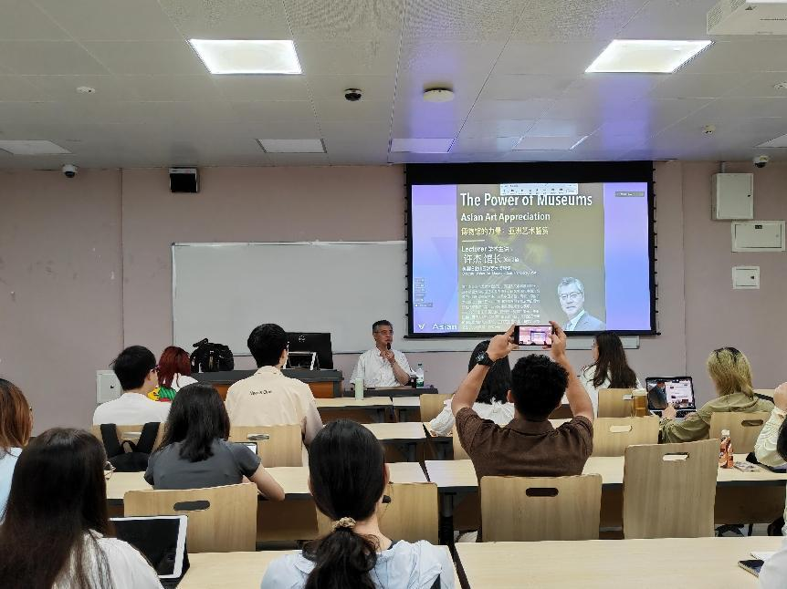 2024年7月9日上午,《博物馆的力量:亚洲艺术鉴赏》课程正式在江安校区一教a109开幕,该课程由赵成清教授策划、主持,许杰馆长担任主讲,全校各学院对博物馆实践领域感兴趣的学生积极参与了本次课程。