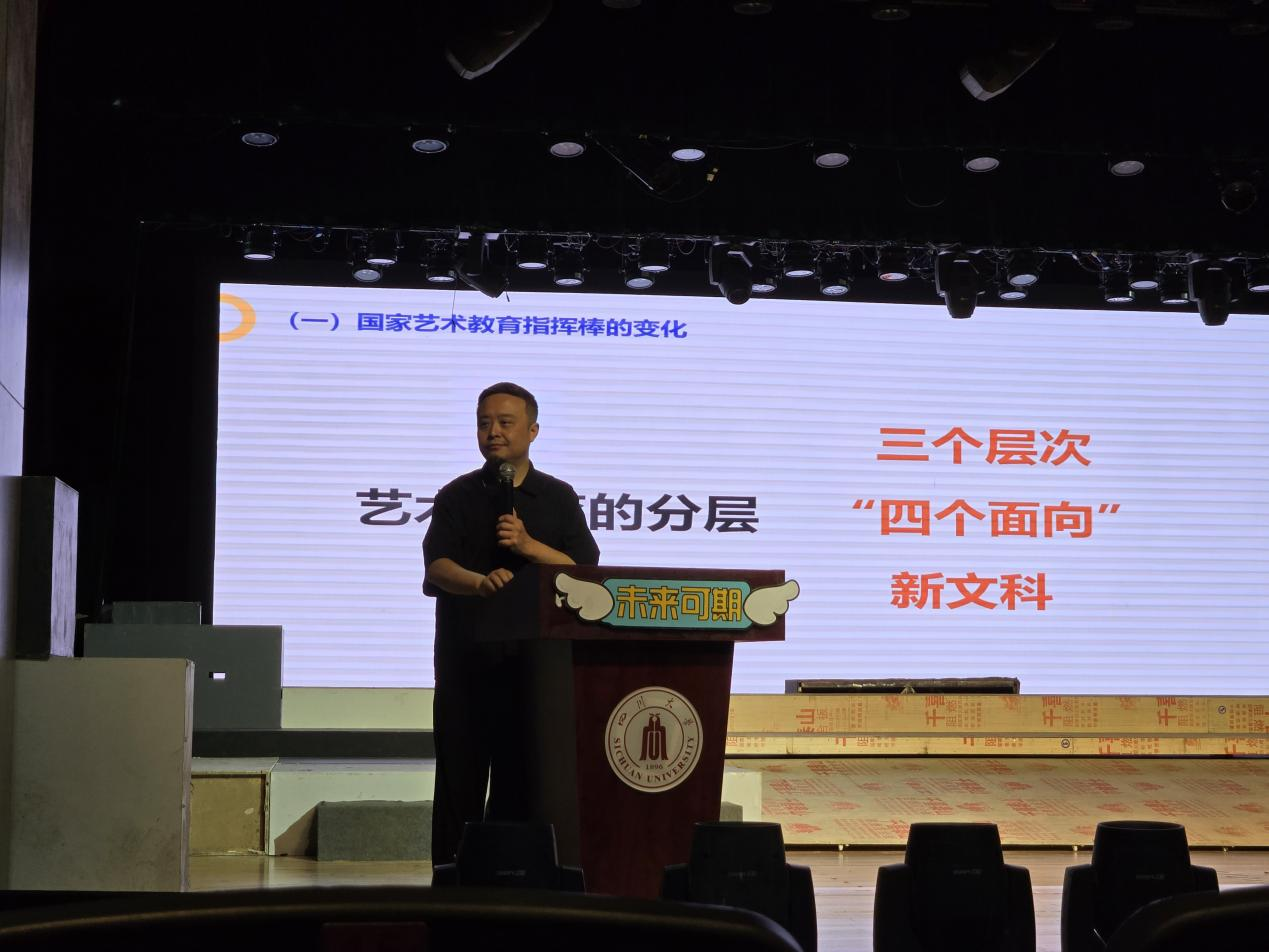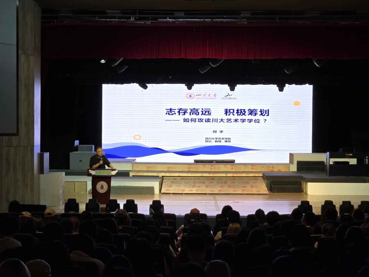 2024年9月10日,四川大学艺术学院何宇院长为2024级新生作了题为《志存高远、积极筹划——如何攻读川大艺术学学位》的主旨讲座。何宇院长引经据典、深入浅出,为2024级新同学带来生动的《开学第一课》。《开学第一课》使同学们进一步理解了自己所学专业的重要性以及艺术类学科在这个快速创新发展的时代扮演的关键角色。