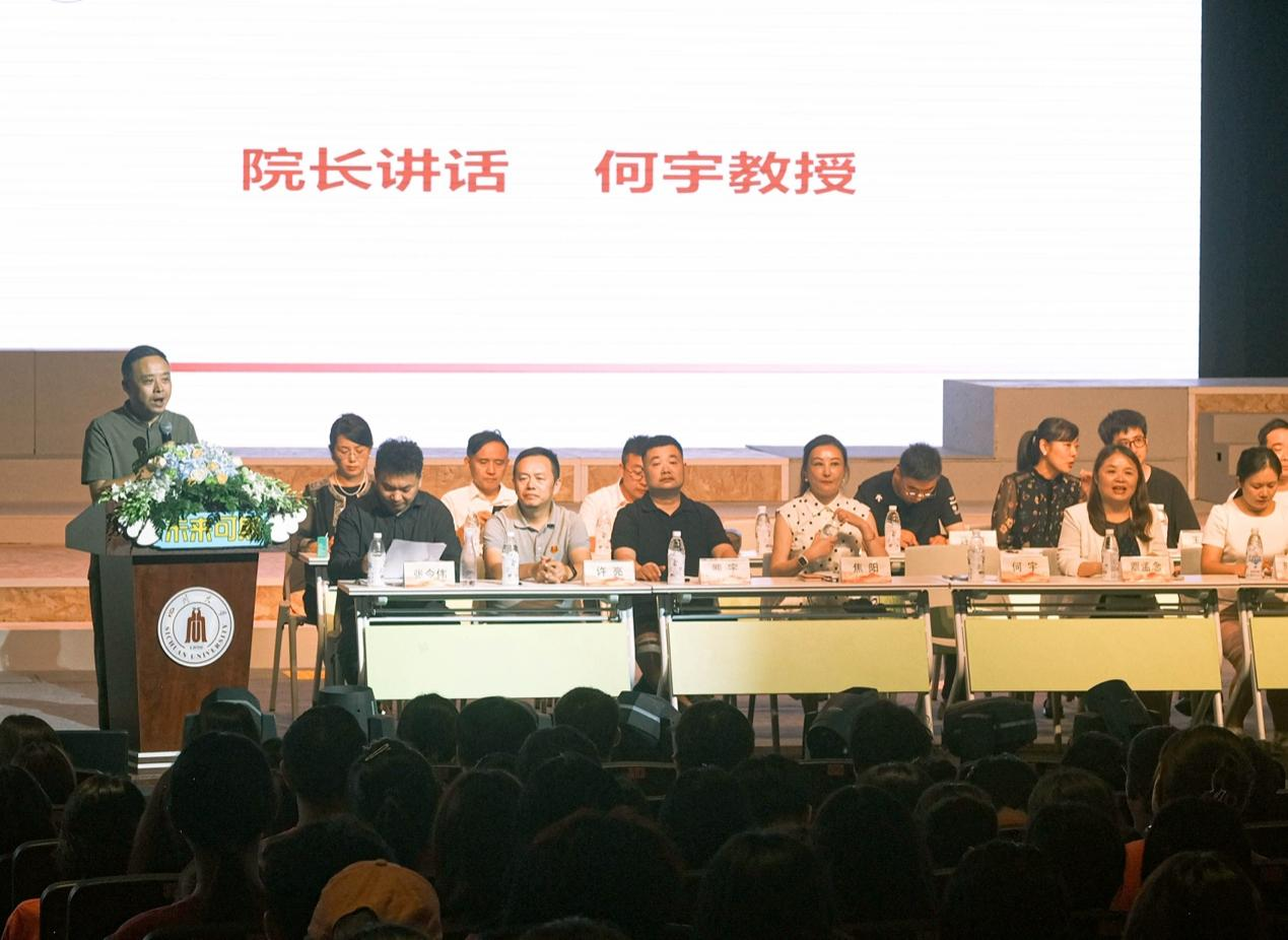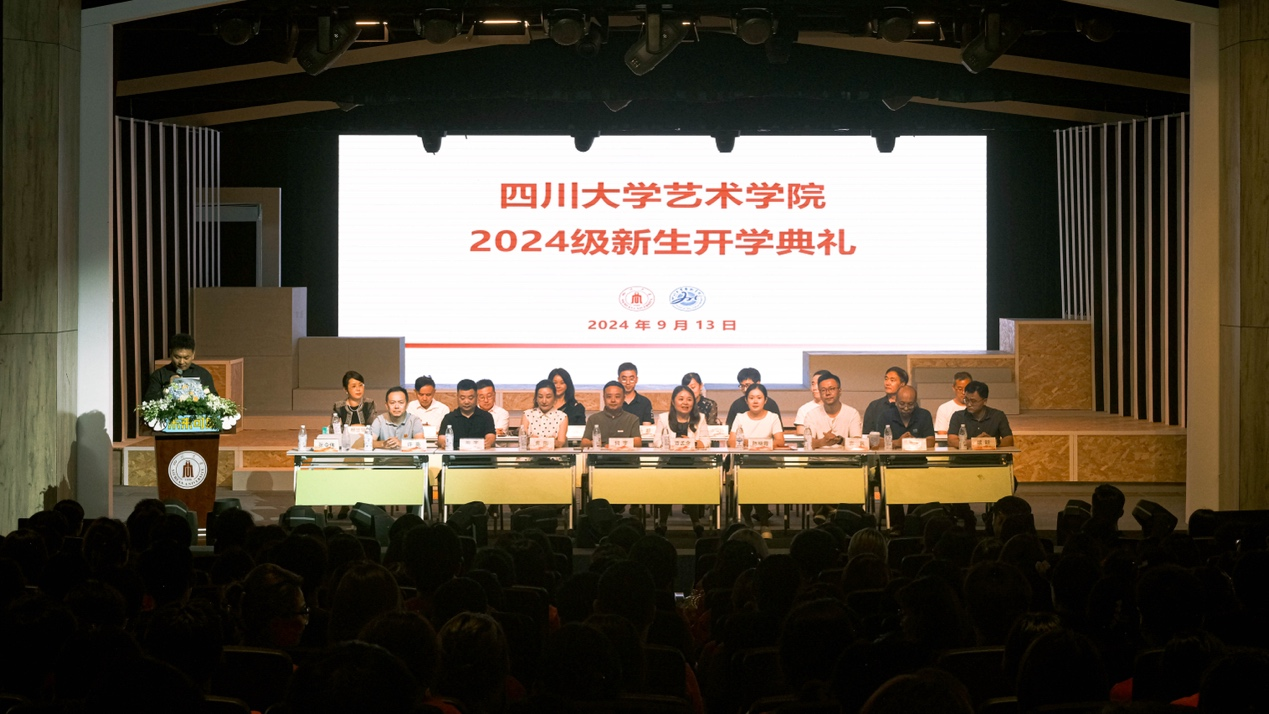 2024年9月13日下午,四川大学艺术学院2024级新生开学典礼在四川大学江安校区艺术学院举行。四川大学艺术学院党委书记覃孟念、院长何宇、党委副书记陈晓霞、副院长焦阳、副院长张令伟、各系系主任及专业教师、各行政科室科长、教导员、全体辅导员以及学院2024级全体新生参加此次典礼。典礼由四川大学艺术学院副院长张令伟主持。