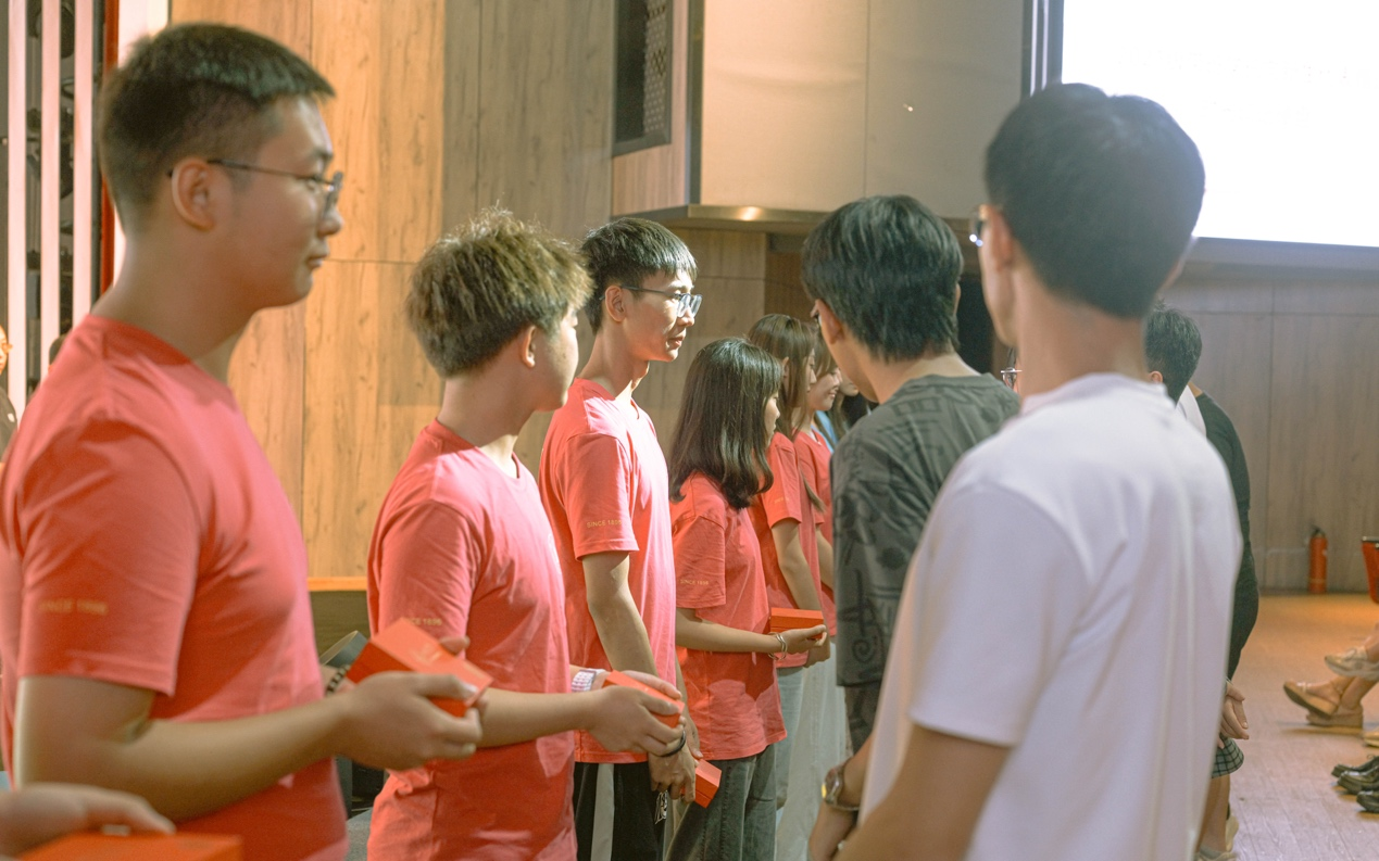 最后,高年级带班学长向新生代表赠送“时光印记硬盘”,并合影留念。