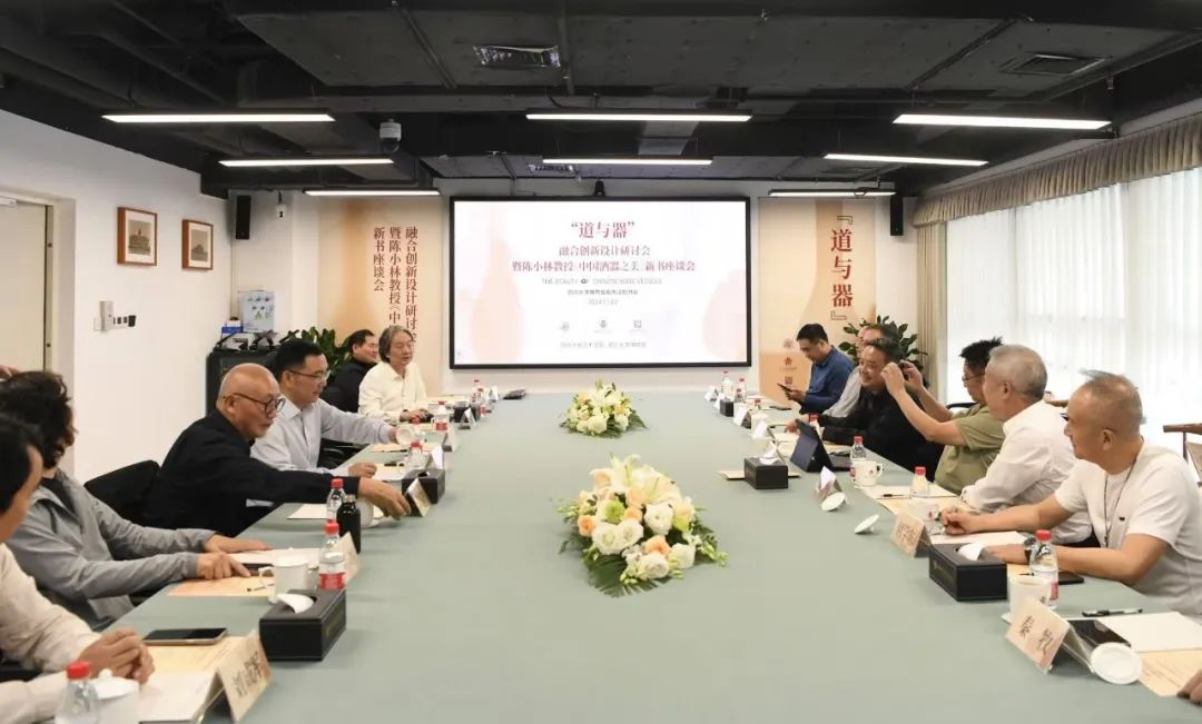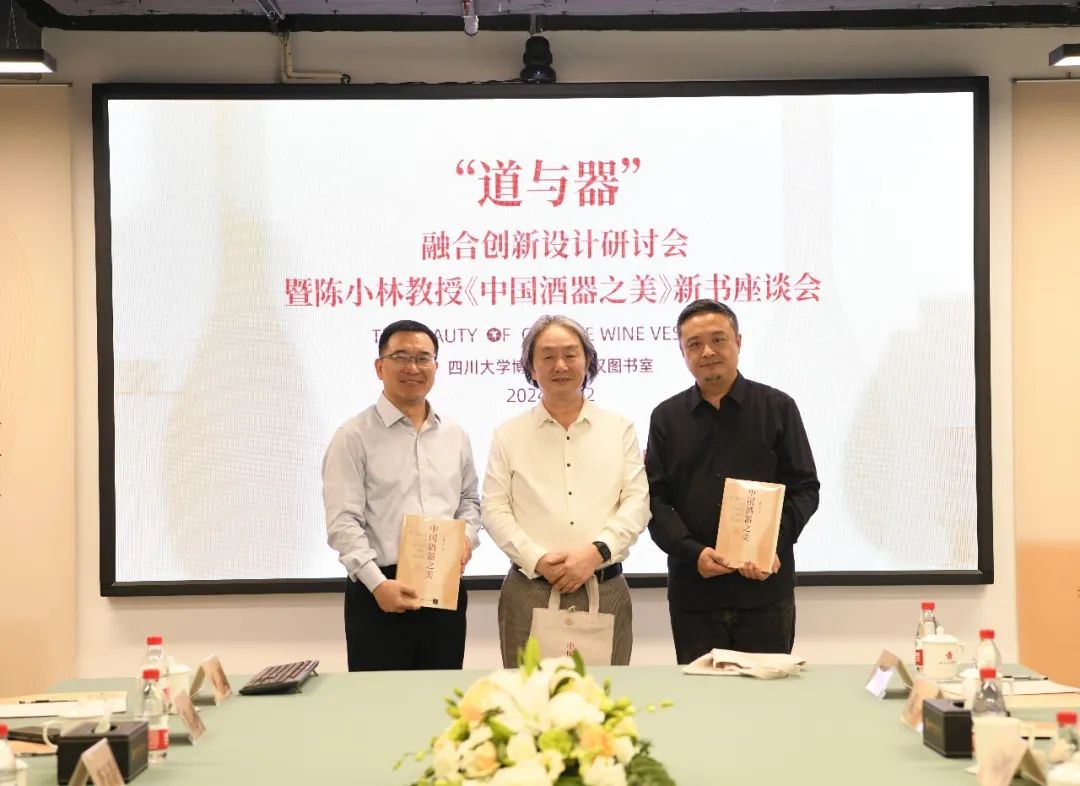 2024年11月2日,“道与器”融合创新设计研讨会暨陈小林教授《中国酒器之美》新书座谈会在四川大学博物馆葛维汉图书室顺利召开。本次学术研讨会由四川大学艺术学院、四川大学博物馆联合主办。邀请来自四川大学、四川省美术家协会、四川平面设计师协会、四川音乐学院成都美术学院、四川大学锦江学院等各单位领导、老师以及来自郎酒、全兴酒厂、成都钓鱼台国宾馆、天坤盖业、雅姿彩包装、新汕纸业等十余位企业代表,共同围绕会议议题展开讨论。