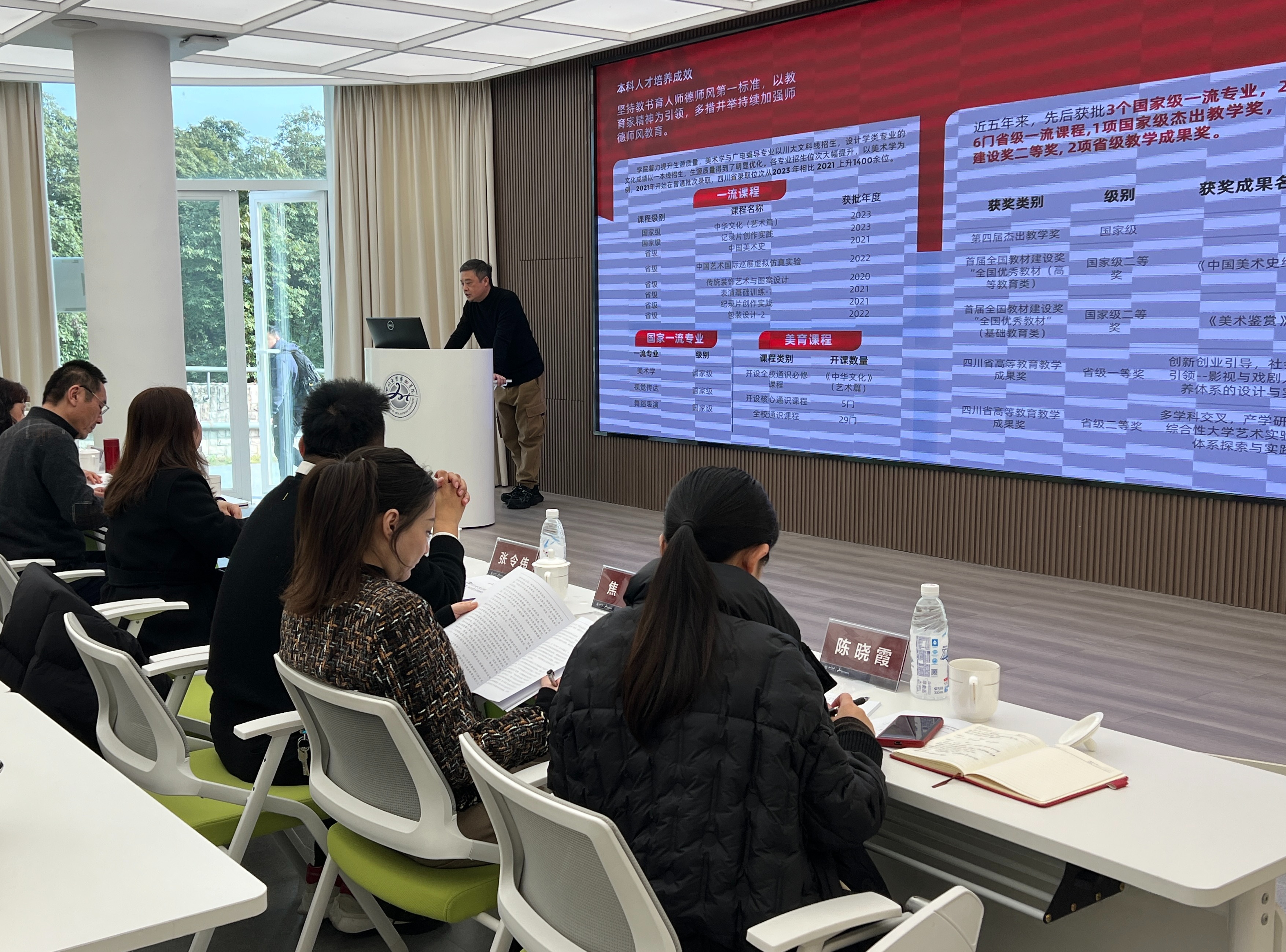 为迎接教育部新一轮本科教育教学审核评估,1216日,学校审核评估自评自建工作文科一组专家对艺术学院进行了现场考察。专家组由马克思主义学院院长蒋永穆任组长,成员由海外教育学院副院长雷莉,商学院教授、校督导钟胜,外国语学院副院长黄丽君,文学与新闻学院教授、校督导刘亚丁组成,马克思主义学院教研科干事吴欢担任秘书。学院党委书记覃孟念、院长何宇、副书记陈晓霞、副院长焦阳、副院长张令伟,学院督导组专家,各系科负责人,教师代表参加会议。