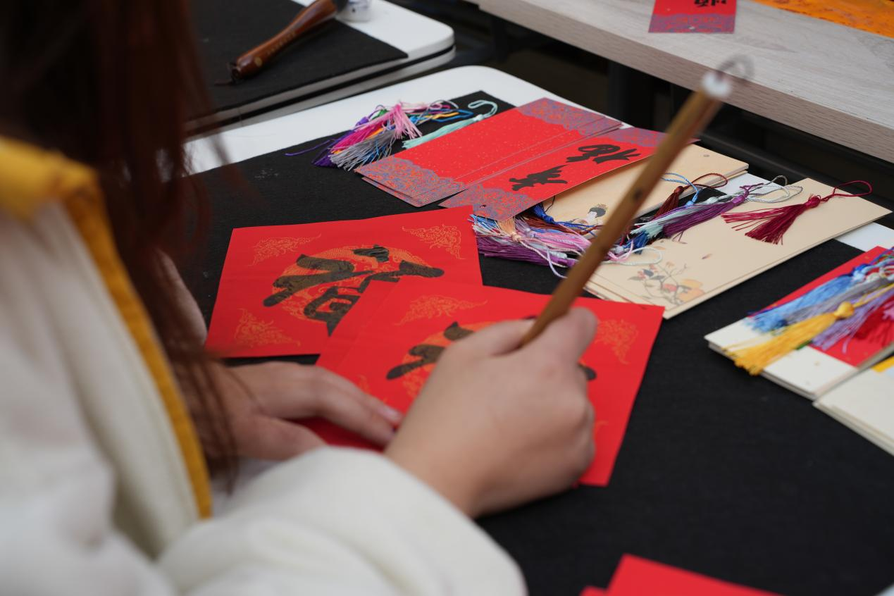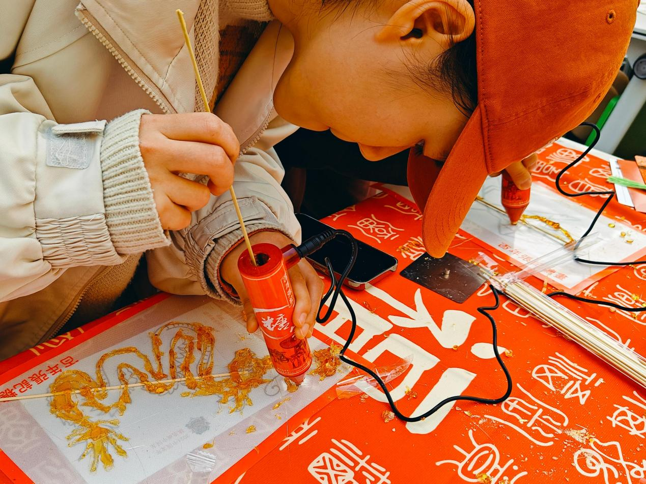活动四:“漆韵新春,书签寄情”。活动中,同学们在书签上书写新年愿景,并利用漆艺技法制作个性化的书签,传递新春祝福。一张张精美的书签承载着同学们的美好愿望和对未来的期许。