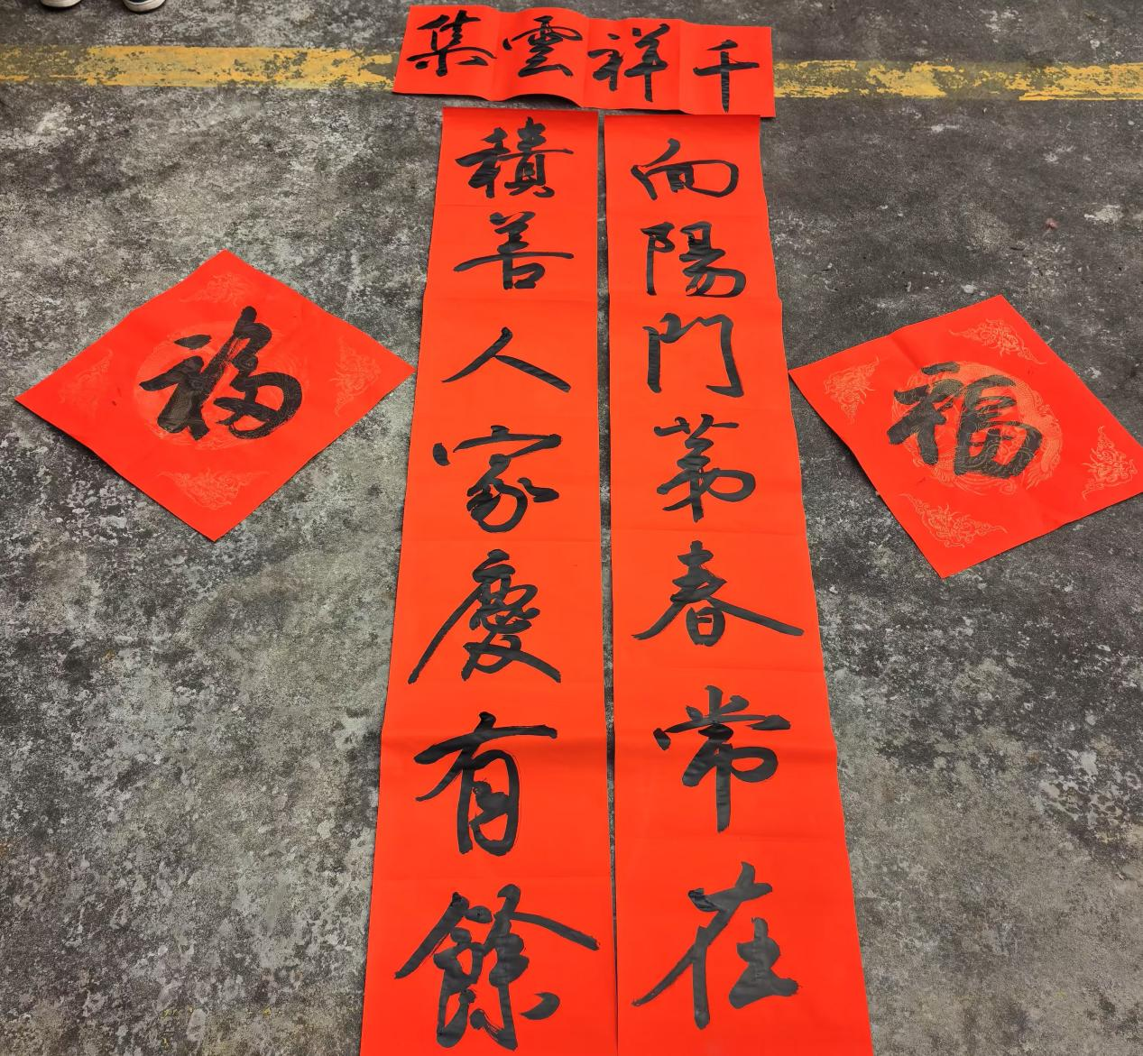 活动九:“围合写春联”。同学们书写春联,增强对传统文化的认同与传承。一副副寓意吉祥的春联不仅装点了校园环境,也为即将到来的新年增添了浓厚的氛围。