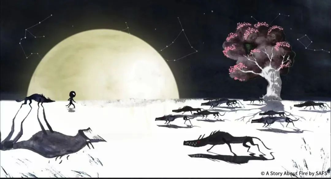 动画电影 《燃比娃》故事源于羌族传说,讲述了远古时代一只人类部落长大的猴子追寻母亲阿勿巴吉的脚步前往神山寻找“温暖”的秘密,历经千险后从 “恐惧之兽”嘴里夺得了火种,全身着火褪去毛发终涅槃成人的故事。他没有与生俱来的超能力,却在一个个挑战中,战胜了对末知的恐惧,最终收获了成长。这不仅是一段关于火种的传说,更是一场引领观众探寻人类精神起源的诗意之旅。作为一部风格独特的二维手绘动画,《燃比娃》以中国传统绘画为载体,采用水墨画的笔触,大胆犀利的色彩与巧妙的留白,营造出原始而神秘的视觉意境,同时运用多种实验动画技法,中西融合,为世界银幕带来了兼具传统东方韵味和现代艺术审美的夺目光影。