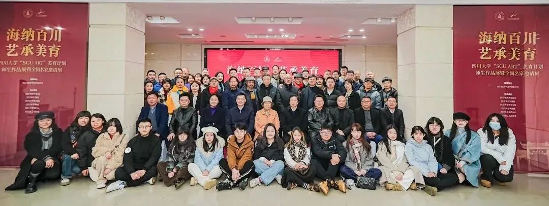 为贯彻习近平总书记关于教育的重要论述和全国教育大会精神的重要举措,践行美育教育理念,推动艺术传承与创新,由四川省文学艺术界联合会指导,四川省美术家协会、四川省诗书画院及四川大学艺术学院等单位联合主办的“海纳百川·艺承美育——四川大学‘scu art美育计划’师生作品展暨全国名家邀请展”于2025年2月18日上午在四川中国书画美术馆开幕。