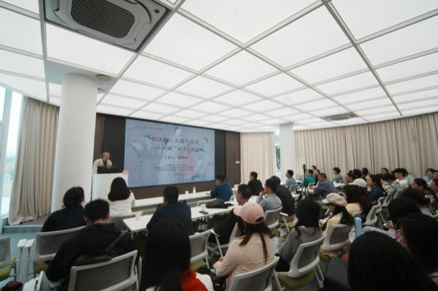 2025年4月8日下午,中国标准草书学社社长,南京艺术学院教授、博士生导师徐利明在四川大学艺术学院湖畔报告厅举办讲座《书法的三大贯气形式——并论“永字八法”》。江苏省文化艺术研究院文艺评论研究所助理研究员徐步雪,四川大学艺术学院教授、书法专业博士生导师、四川大学书法研究所所长杨帆,四川大学艺术学院副教授彭再生,助理研究员于广华以及书法专业本、硕学生和校外业界人士共计90余人参加了讲座。四川大学艺术学院书法专业负责人刘志超主持讲座。