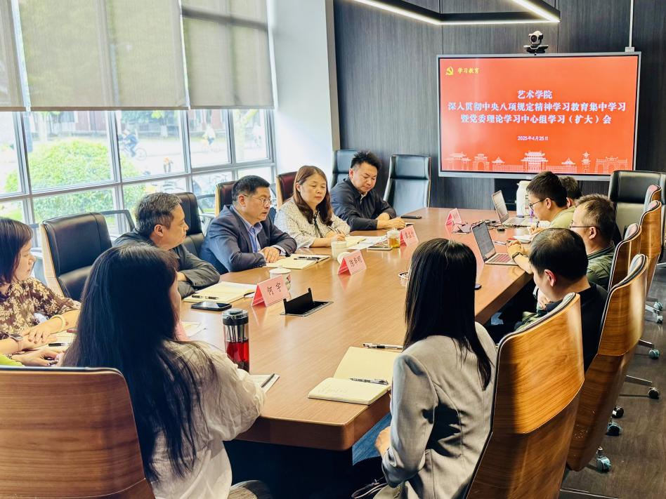 4月25日,艺术学院召开深入贯彻中央八项规定精神学习教育集中学习暨党委理论学习中心组学习(扩大)会在一会议室举行,四川大学研究生工作部部长陈华明出席并讲话,学院领导班子、党委委员、党支部书记代表参加,学习会由学院党委书记覃孟念主持。