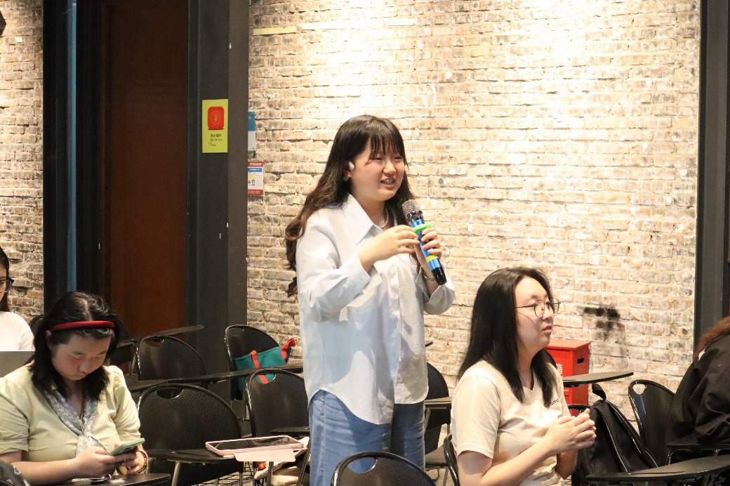 孙润琳同学从文化传播层面,请教了周老师的后续规划。周老师表示,他将继续用镜头记录大熊猫,让中国文化走向世界。同时,他也将深入文创相关领域,助力“熊猫经济”蓬勃发展。黄峻杰同学从高校学生身份出发,向周老师请教高校学生如何助力熊猫文化传播。周老师指出,高校学生可以发挥自身创造力,依托高校育人平台,以项目为载体,为熊猫文化传播贡献力量。何姝娴同学请周老师结合自身摄影经验,为同学们的纪录片拍摄作指导。周老师认为,同学们可以从故事性、启迪性、治愈性着手创作,为纪录片作品搭建良好框架。
