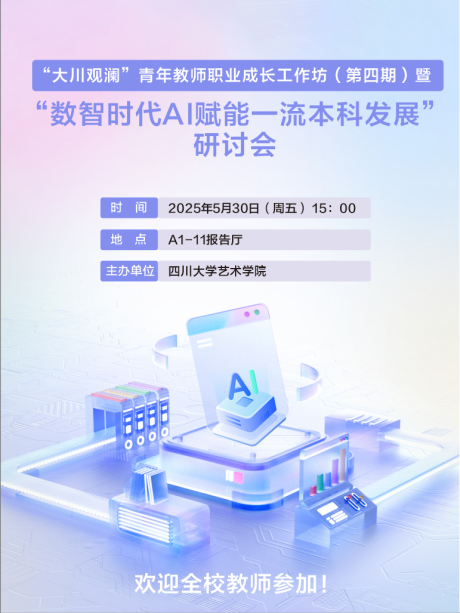 为进一步促进青年教师学术交流和职业发展,探索数智时代ai在教育教学中的应用,推动一流本科专业建设,5月30日,学院“大川观澜”青年教师职业成长工作坊(第四期)暨“数智时代ai赋能一流本科发展”研讨会在a1-11报告厅顺利举行。学院领导、相关学科资深教授、青年教师代表等参加会议。会议由学院党委书记覃孟念主持。