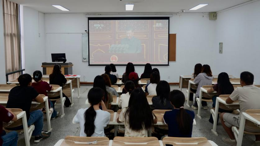 9月3日,纪念中国人民抗日战争暨世界反法西斯战争胜利80周年大会在北京天安门广场隆重举行。中共中央总书记、国家主席、中央军委主席习近平发表重要讲话。学院高度重视、周密安排,组织师生通过电视、网络、广播等渠道收听收看,认真学习领会习近平总书记重要讲话精神,共同见证庄严时刻,以最崇高的敬意纪念这场伟大胜利。