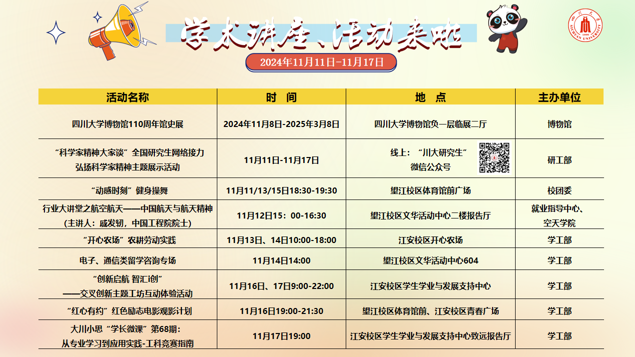 学术讲座论坛及校园文化活动预告(2024年11月11-k8凯发