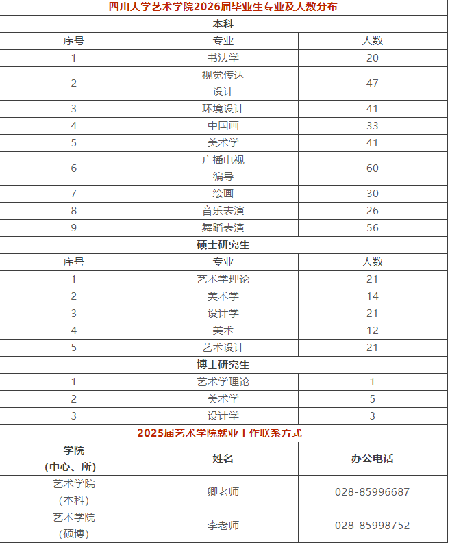 衷心感谢您长期以来对四川大学艺术学院就业工作的大力支持!