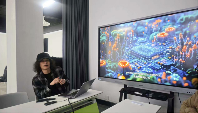 本次会议由设计与媒体艺术系系主任许亮副教授主持,设计与媒体艺术系全体教师、艺术学院党政办主任王涛老师参加。靳太然老师以“数智时代ai赋能一流本科发展”为主题分享了ai技术语言在设计教学中的融合与教学案例,分享其在实践交互艺术和aigc的应用中设计教学方法、理念的改变。许亮、王蓓、李贞、赵帅老师指出,应适当鼓励技术语言在本科教学场景和实践中的应用,同时警惕“技术至上”的倾向,注重以“立德树人”为导向的教育目标,培养学生的原创意识和设计思维能力。