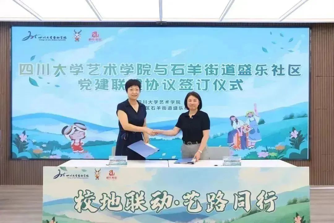 四川大学艺术学院党委与盛乐社区党委围绕“艺·经典、乐·互动、美·奉献”签订了党建联建项目协议。熊伟书记表示,这是一个以党建引领为核心、以美育服务社会为宗旨、以互动交流为手段、以共建共治共享为目标的项目。我们将围绕三个板块,开展丰富多彩的活动,以志愿服务为载体强化“实践育人”,让高校师生与社区居民在艺术中相遇、相知、相融,传递交流美学思想,以美为媒,增强社会主义文化自信。我们相信,“艺塑·乐源”项目将成为高校与社区合作的一个典范,为“推进文化自信自强,铸就社会主义文化新辉煌”发挥积极的作用。