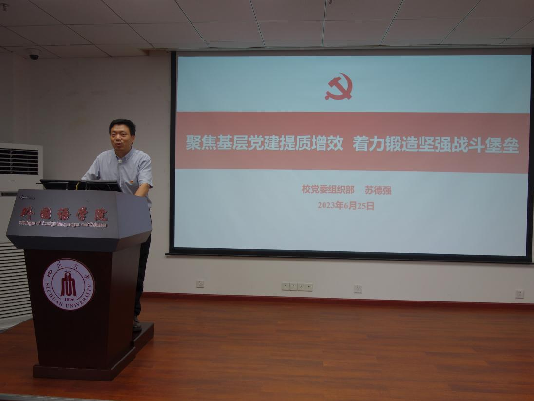 校党委组织部副部长苏德强作题为《聚焦基层党建提质增效 着力锻造坚强战斗堡垒》的主题报告。他指出,要正确认识基层党支部战斗堡垒的深刻内涵,根据师生党支部的不同特点,准确把握基层党支部提质增效的目标任务,抓实基层党支部提质增效的关键举措。最后,他表示校党委组织部(党校)将从注重加强过程指导、加强资源力量统筹、搭建交流展示平台和加强党建工作保障等方面重点发力,不断增强基层党组织政治功能和组织功能。