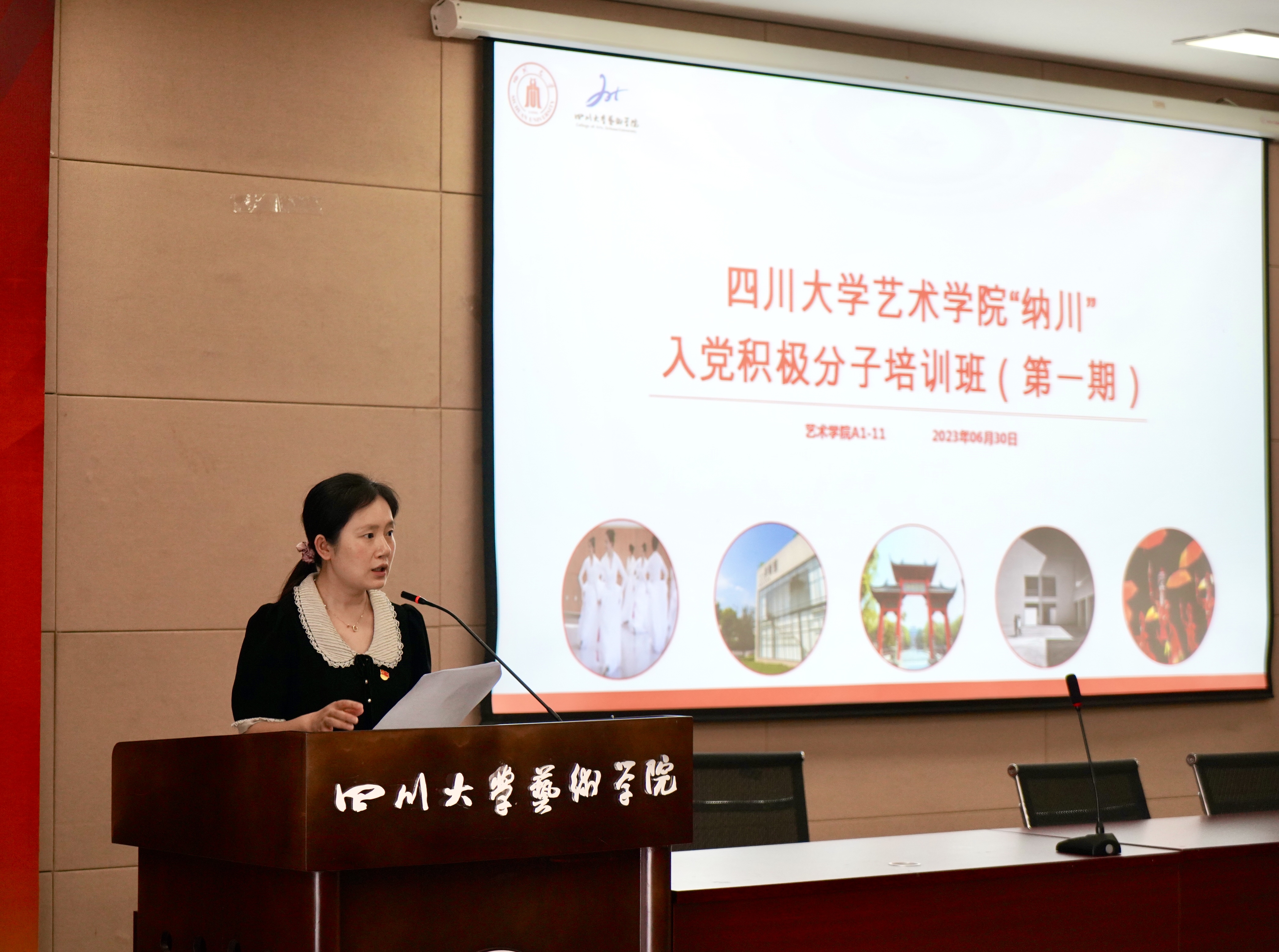 6月30日下午,为庆祝中国共产党成立102周年,深入贯彻落实主题教育“学思想、强党性、重实践、建新功”总要求,认真做好入党积极分子和预备党员的培养教育工作,四川大学艺术学院在a1-11报告厅举办七一新党员宣誓仪式暨“纳川”入党积极分子培训班开班仪式。学院党委书记熊伟、副书记陈晓霞,学生支部书记、新发展党员和入党积极分子100余人参加了本次活动。学院党委副书记陈晓霞主持仪式。
